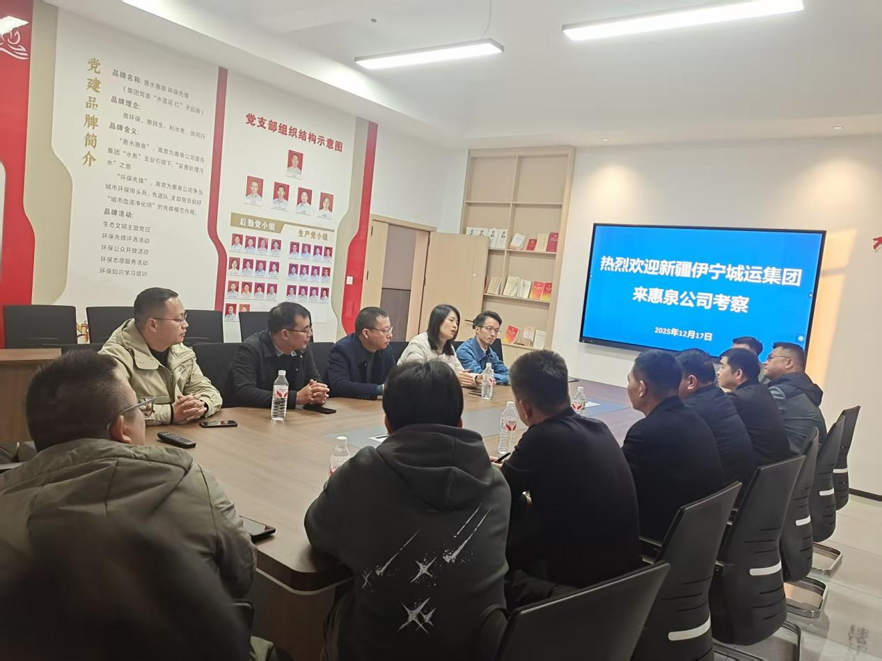 12月17日,新疆伊寧城運(yùn)集團(tuán)黨委副書(shū)記、副董事長(zhǎng)、總經(jīng)理閆勇杰率考察團(tuán)一行8人蒞臨我司進(jìn)行考察交流。集團(tuán)黨委委員、副總經(jīng)理、財(cái)務(wù)總監(jiān)朱亞成,集團(tuán)黨委委員、副總經(jīng)理李莉君,惠泉公司董事王辰及相關(guān)負(fù)責(zé)人陪同接待。