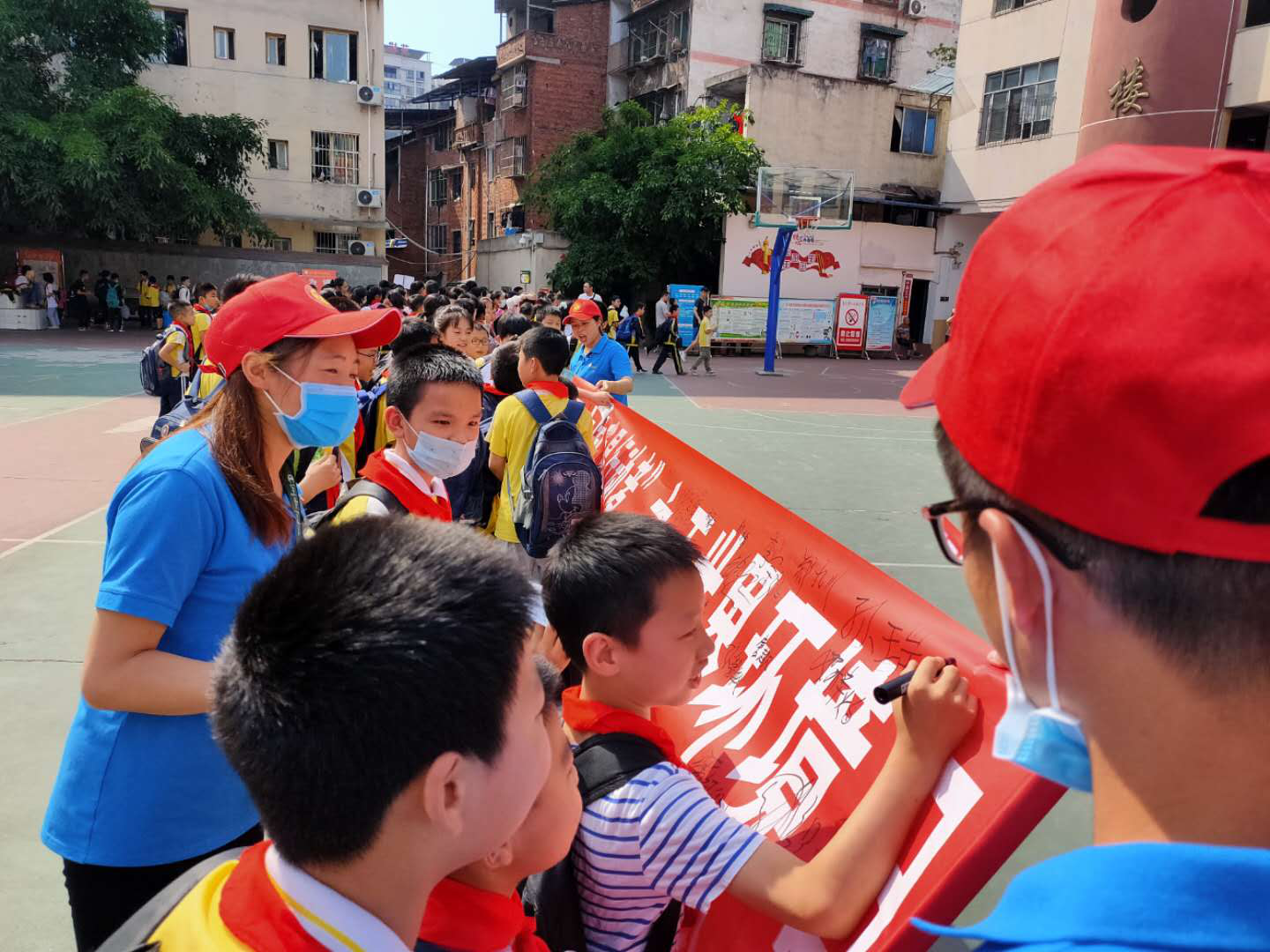 活動(dòng)中,志愿者們首先采取集中宣講和你問我答的方式向廣大師生廣泛普及環(huán)保知識(shí);呼吁廣大師生積極參與到環(huán)境保護(hù),堅(jiān)持從自己做起、從身邊做起,節(jié)約每一滴水、每一度電、每一張紙,進(jìn)一步調(diào)動(dòng)了全體學(xué)生爭(zhēng)做“環(huán)保小衛(wèi)士”的熱情。同時(shí),也希望用師生們的實(shí)際行動(dòng)影響和帶動(dòng)各自家庭的每一個(gè)人,讓更多的人共同參與到生態(tài)環(huán)境保護(hù)工作中來(lái),爭(zhēng)做環(huán)境保護(hù)的宣傳員和行動(dòng)者,實(shí)現(xiàn)人人關(guān)心環(huán)保、人人參與環(huán)保的良好氛圍。其次,志愿者們積極開展了“美麗中國(guó)、我是行動(dòng)者”簽名承諾活動(dòng),全校師生更是踴躍參加,并主動(dòng)宣誓承諾,一定做一名合格的“環(huán)保小衛(wèi)士”。
